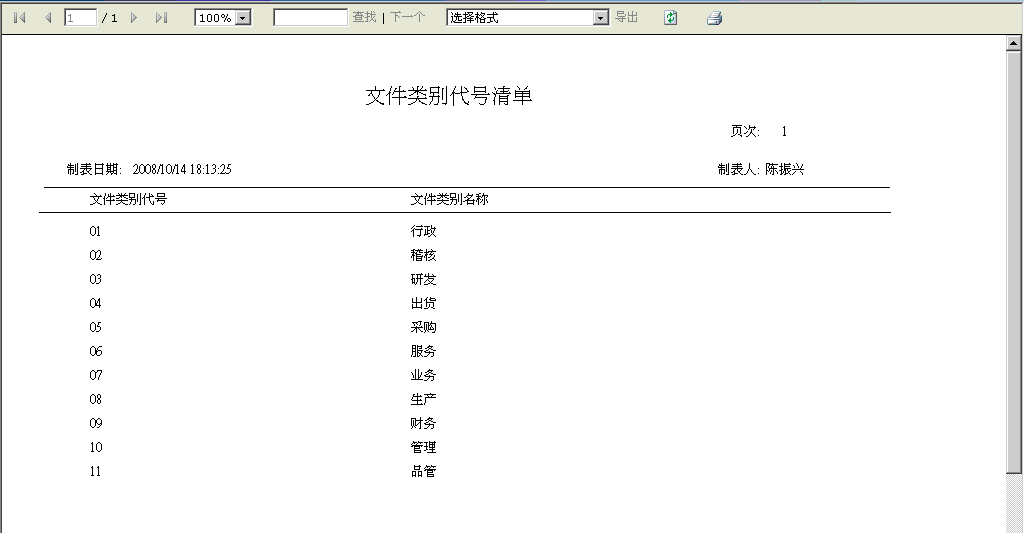 以报表方式呈现文件之类别代号。