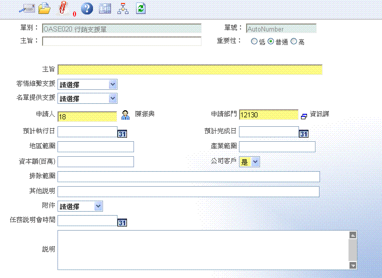 首 页 --> OAS 电子表单清单 --> 行销支援单