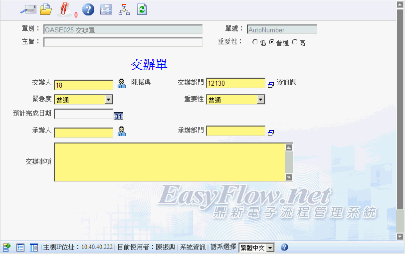 提供一个公司内部部门之间彼此的交办事项,可透过此系统做追?控管。
