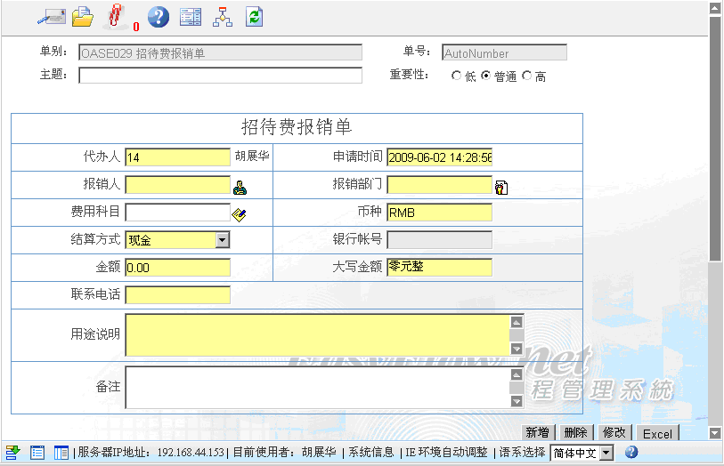 首页 --> OAS电子表单清单 --> 招待费报销单