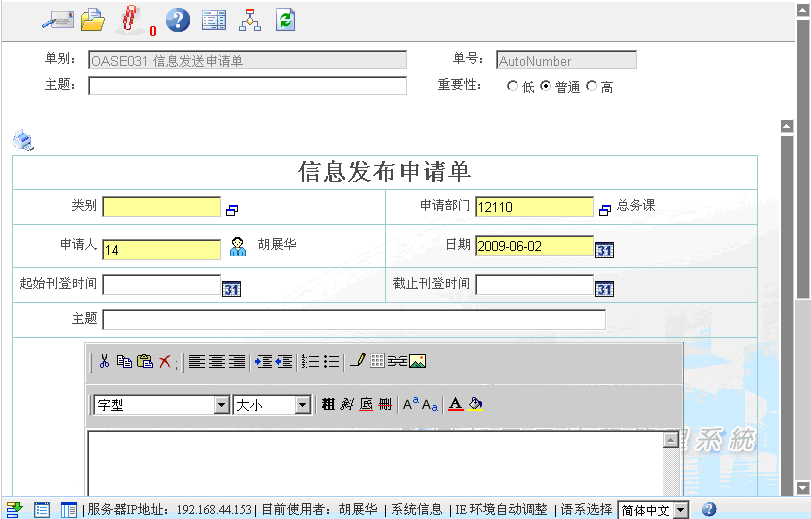 首页 --> OAS电子表单清单 --> 信息发布申请单