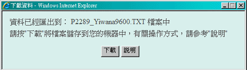 按下汇出到 TXT 档的按钮後,系统将出现一询问确定的讯息视窗,您若选择"是",则系统则将您所勾选的姓名转出到 TXT 档,并出现一个已成功的讯息画面,此时,您就有一个可以供您编辑的 TXT 档了。