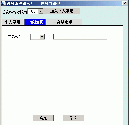 选择您要筛选的栏位,输入条件後,按下[加入]按钮将您所输入的条件加入条件式中。