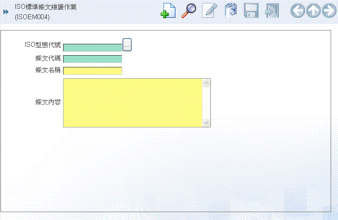 首 頁 --> ISO文件管理 --> 一般資料維護 --> ISO標準條文維護作業