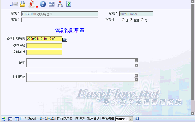 首 頁 --> OAS 電子表單清單 --> 客訴處理單