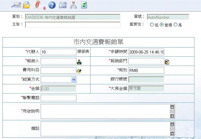 首頁 --> OAS電子錶單清單 --> 市內交通費報銷單